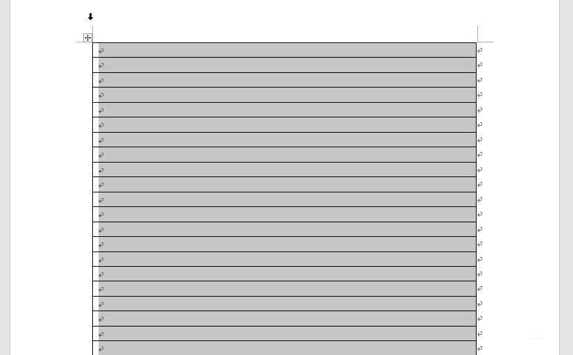 3、上步确定之后,会出现如图的样式;并把鼠标放在十字光标的上方,出现方向向下的黑色箭头,单击鼠标,进行全选,当然其他方法也行;