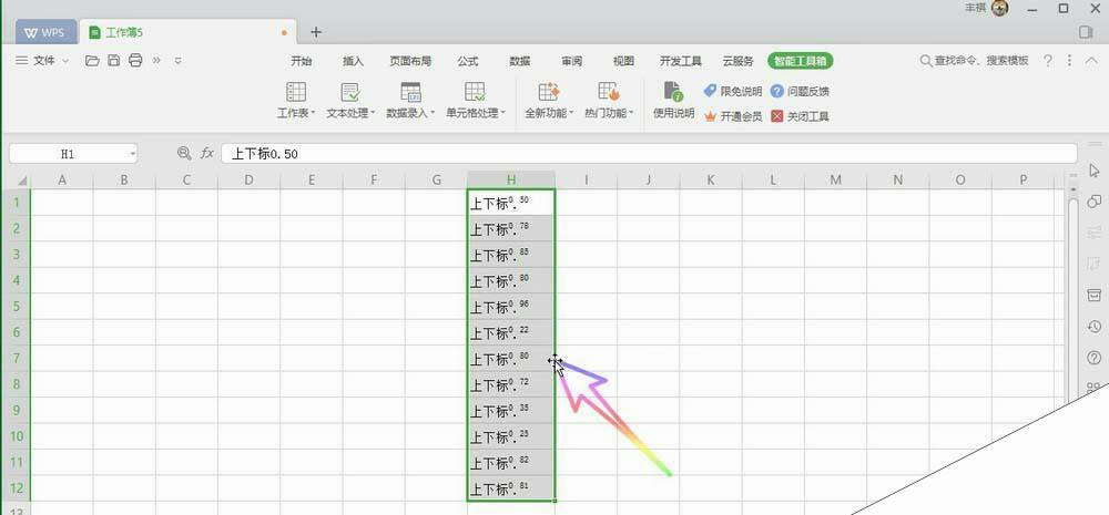 6、最后我们可以看到,单元格中所有的数字都变成了上标,如下图所示,