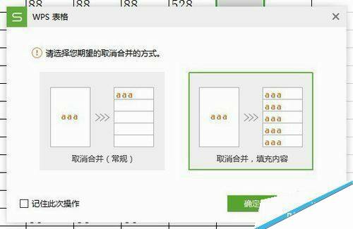 接下来就会弹出wps2019取消合并方式的窗口了,点击“确定”按钮。
