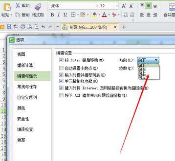 点击右后方,一个下拉选择对话框的小三角,选择我们想要设置enter的移动方向。