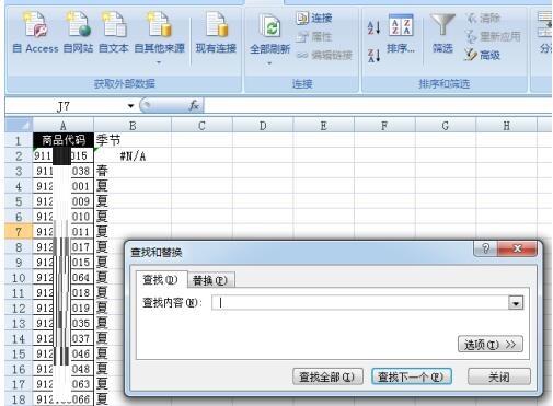 下面介绍下出现问题的第二种可能性,出现错误的原因就可能是款号中有空格,空格这个符号往往我们输入的时候手误多打了一下,但是由于显示出来是空白的所以不用被我们察觉到。今天利用”查找“功能,找出空格。看看到底是不是它的存在使得数据出现问题。