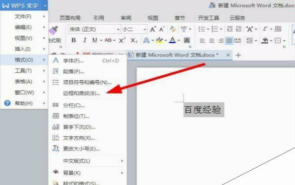 2、然后选择单击”边框和底纹“命令。