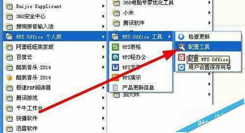 2、找到Wps的安装目录后,打开Wps office工具下的配置工具,如下图所示: