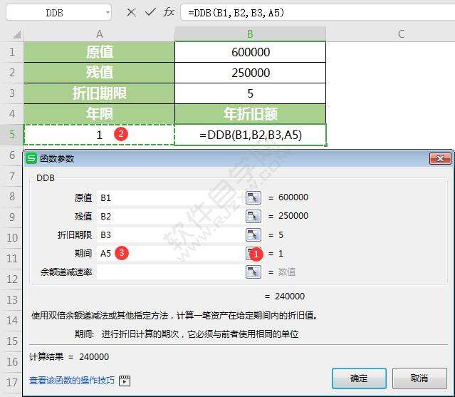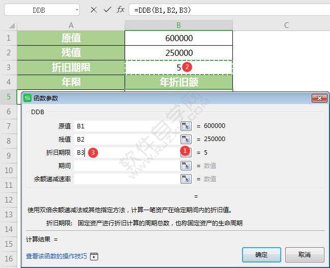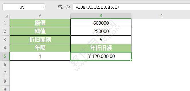 以上是为您收集整理的【WPS中ddb函数怎么用】办公软件教程的全部内容,希望文章能够帮你了解办公软件教程WPS中ddb函数怎么用。