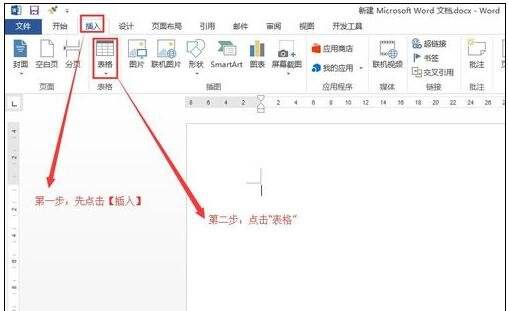 我们需要先打开word2013,首先我们画一个表格。点击工具栏上的【插入】按钮,然后点击“表格”。