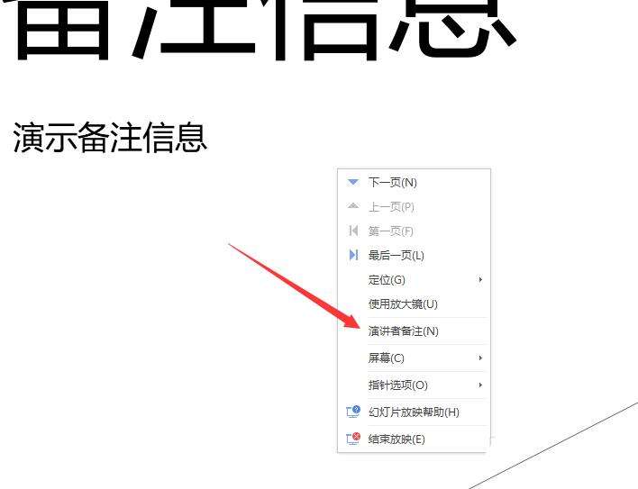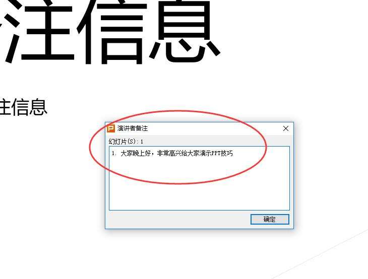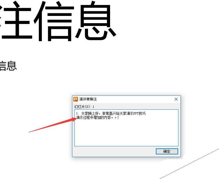 5、演讲的过程中添加备注信息,如果在演讲过程中需要做一些笔记,你也在备份信息中直接输入,需要增加了一些内容,也就是可以直接修改编辑备注内容,