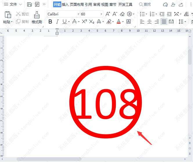 更改圆圈数字效果,最后,我们看到圆圈里面的数字就更改成108了。