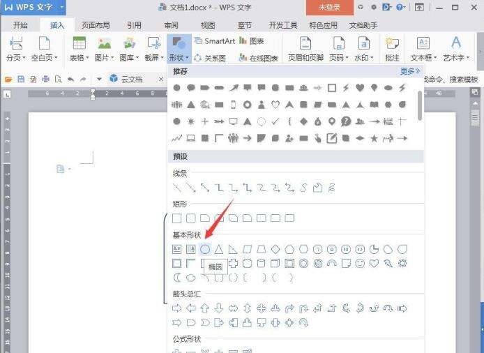 3、点击【插入】【形状】【椭圆】。