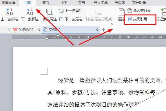 3、在导航栏中找到“引用->交叉引用”。