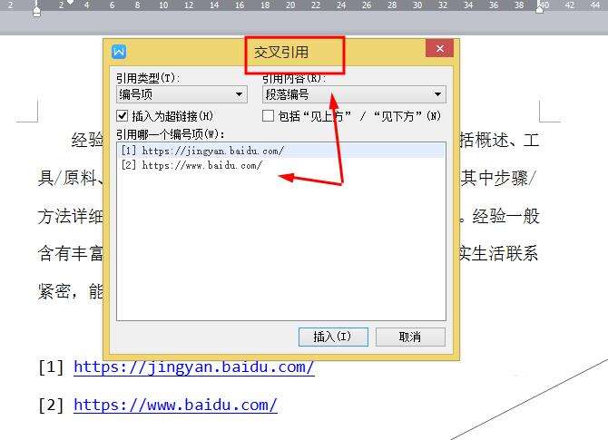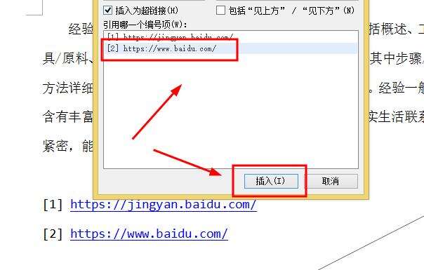 5、选择合适的链接引用,点击“插入”即可。