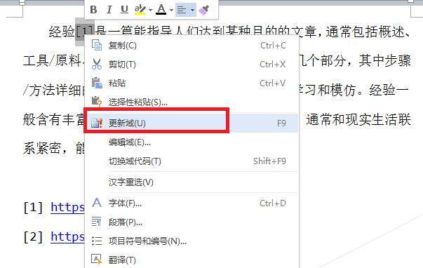 7、如果引用的顺序改变了,选择“更新域”即可。