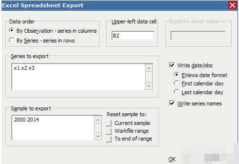 可以选择自己要保存的项目选项,最主要的是在series to export下方输入X1 X2 X3,其他可以保持不变。