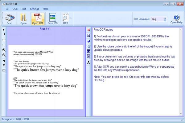 OCR软件是可以把pdf文件和扫描的文档转换成可编辑的电子文本文件的工具软件,可以快速的扫描PDF文件、图片、文档,提取其中的文字,运行FreeOCR,占scan或者点击open