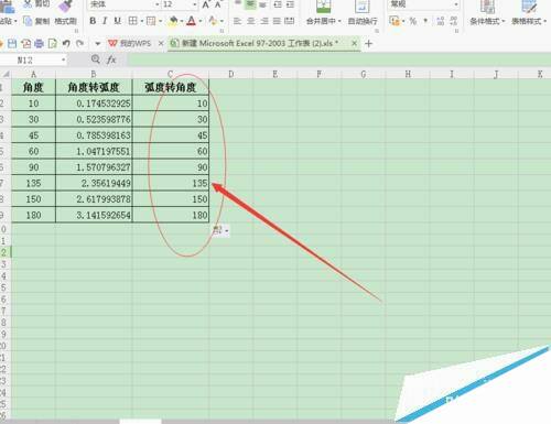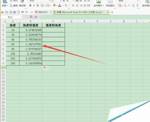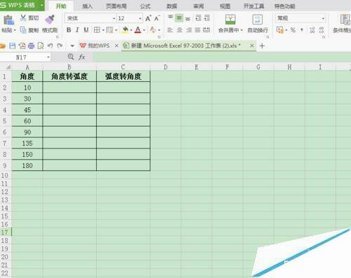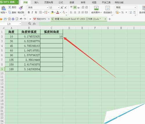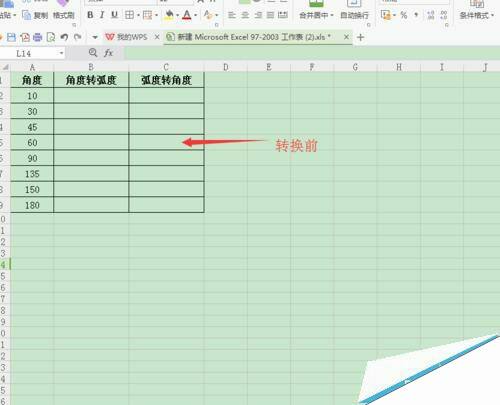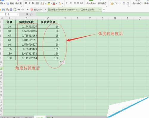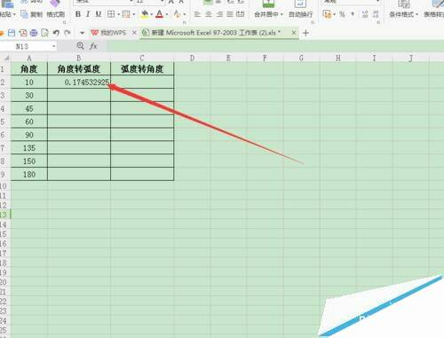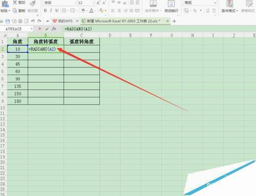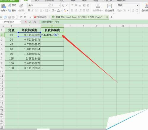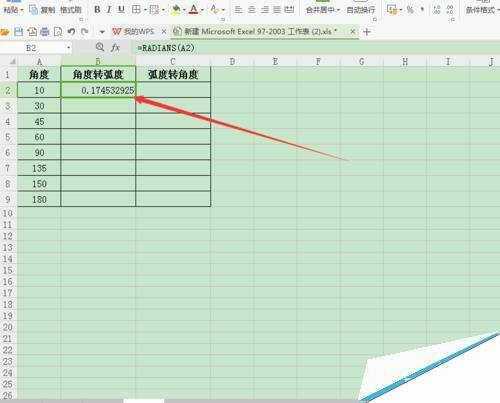 wps表格中怎么将弧度与角度相互转换?