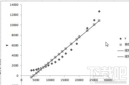 6、在右侧就是我们的线性拟合图,观察拟合效果还不错,我们可以对图做一些修改,方便放到word文档里面,选中该图