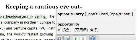 2、将鼠标停留在单词上,系统会自动弹出翻译结果的浮动窗口。单击浮动窗口中的“播放按钮”,即可播放该单词读音。
