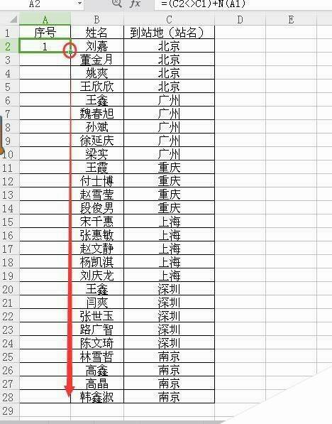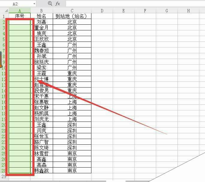 2、清空a列中手动输入的序号,然后将活动单元格定位在a2单元格。