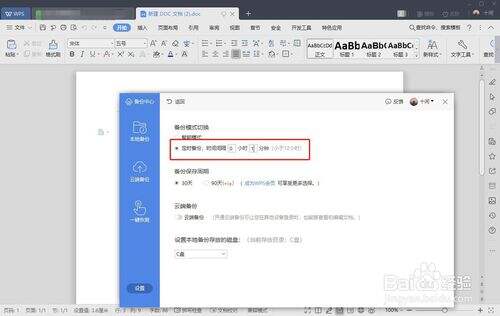 6、将“定时备份.时间间隔”(我们拿1分钟举例)间隔时间设置成1分钟,则自动保存时间会在每分钟进行自动保存,具体要看自己将时间间隔设置多长时间,总之设置**分钟那么自动保存的时间就是每**分钟自动保存一次。如图