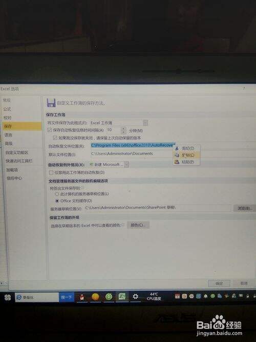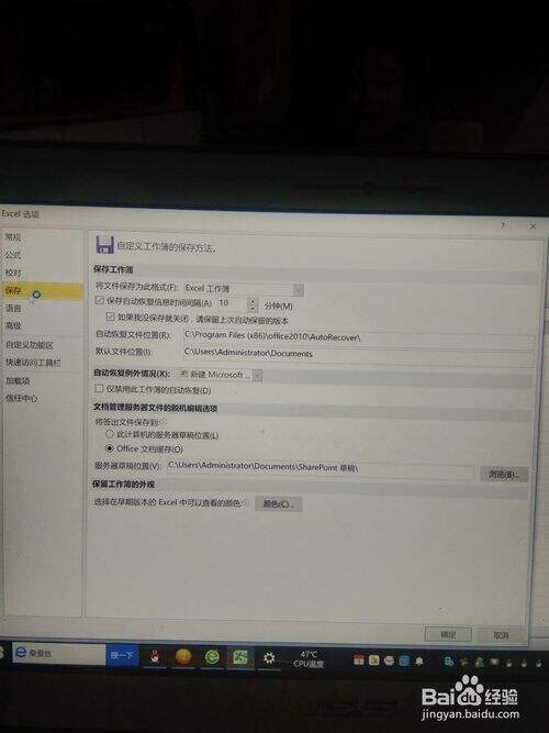 2、这个时候会弹出一个新的对话框,小朋友们在弹出的新的对话框就可以看到【自动恢复文件的位置】的选项了,这个就是文件自动保存在的目录了。