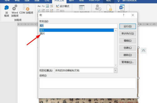 8、点击“宏”,就可以看到图片的固定模板就储存在word里面了。
