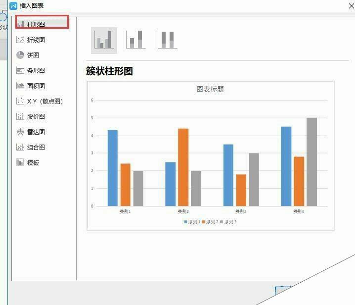 2、在弹出的对话框中,选择“柱形图”,点击“确定”,文档中就显示柱形图表了(如下图)