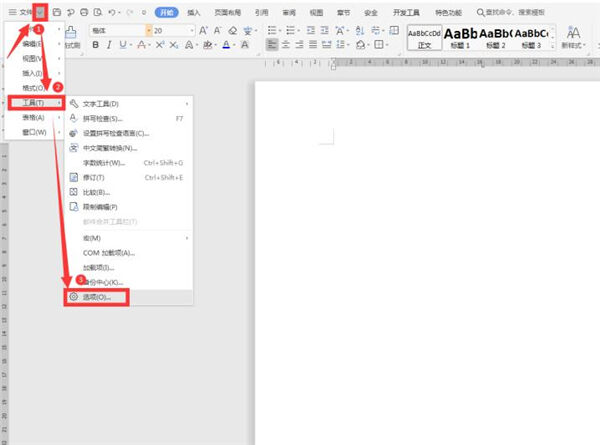 点击左上角【文件】旁边的小三角,下拉菜单选择【工具】,二级菜单点击【选项】: