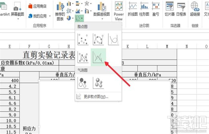 1、首先,我们打开我们需要制作图表的的excel数据,然后点击【插入】【散点图】【带折线的散点图】,插入一个空白图表