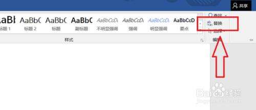 2、“开始”按钮的展开列表中,单击选择“替换”选项。