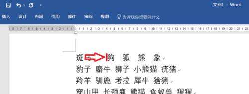 6、可看到之前选中的首行中空格已变为制表符 。将光标定位到首行制表符与下一个文本之间的位置。(如图所示)