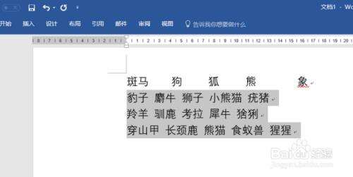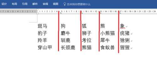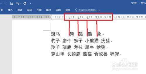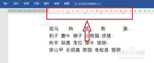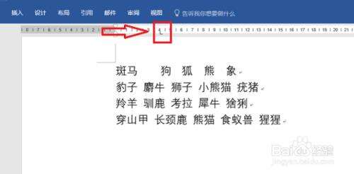 1、接下来选中所有文本,调节标尺上制表符的位置来带动文本移动对齐。