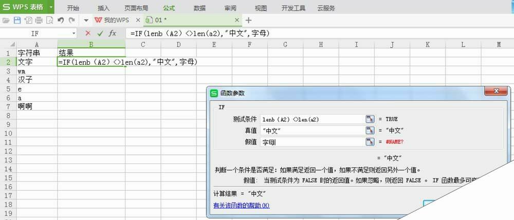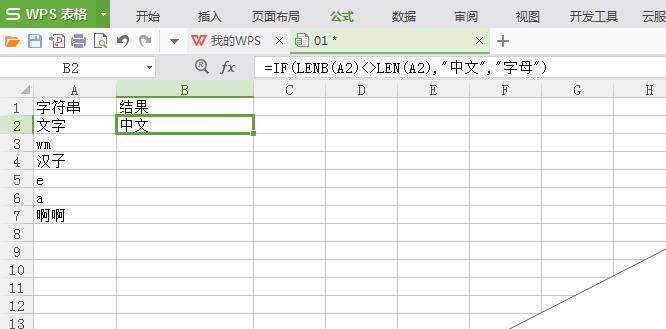 WPS怎么判断单元格内容是汉字还是字母?