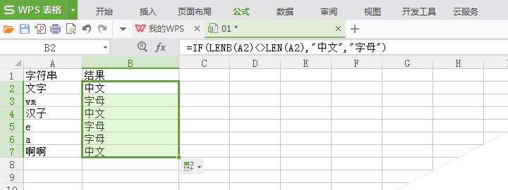以上是为您收集整理的【WPS怎么判断单元格内容是汉字还是字母?】办公软件教程的全部内容,希望文章能够帮你了解办公软件教程WPS怎么判断单元格内容是汉字还是字母?。