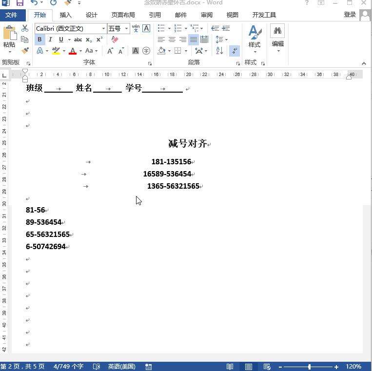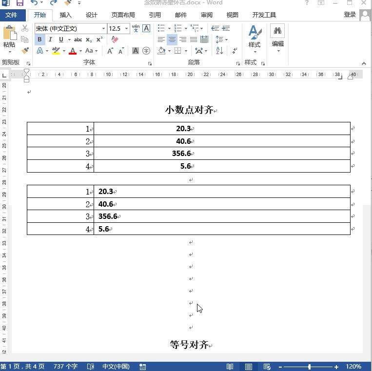 2、用于表格内数字小数点对齐,试卷公式等对齐(小数点对齐,不仅仅使用小数点,比如说:=、+、-等字符都可以作为对齐的基点)