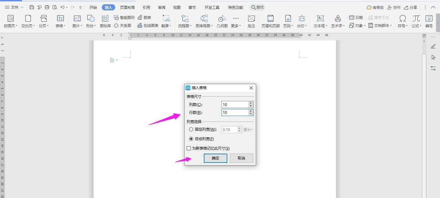 1、打开Word文档,点击导航栏上的“插入-表格”,选择“插入表格”