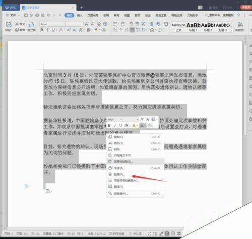 在选中的内容上右键,选择段落。