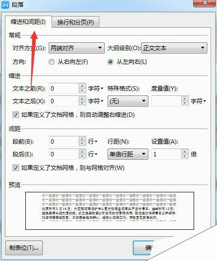 在弹出的“段落”窗口中,点击“缩进和间距”标签。