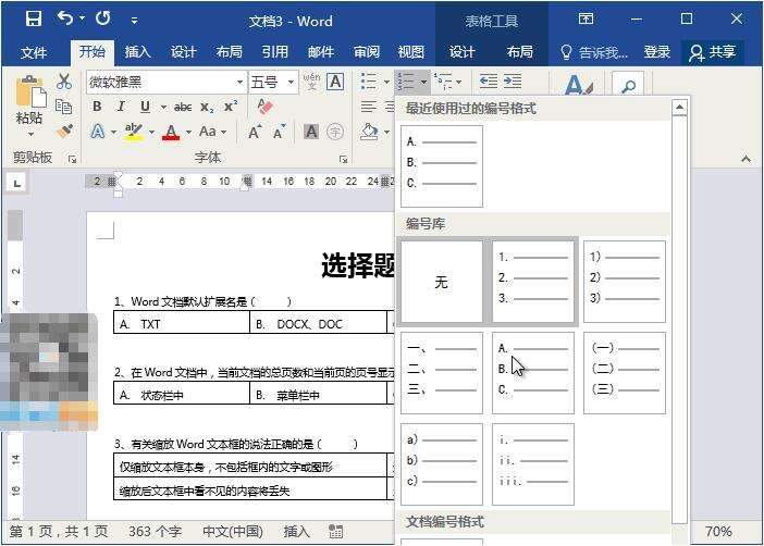 3、使用【编号】可以快速的搞定A.B.C.D. 就不用我们手动录入了。