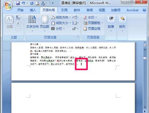3、如果遇到有空白页不能删除的情况,是可以把光标定位在空白页前一页的末尾,按Delete键就可以删除空白页了;