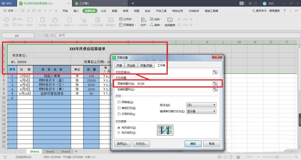 6、好了,设置一下打印标题,这个年终结算表就做好了。