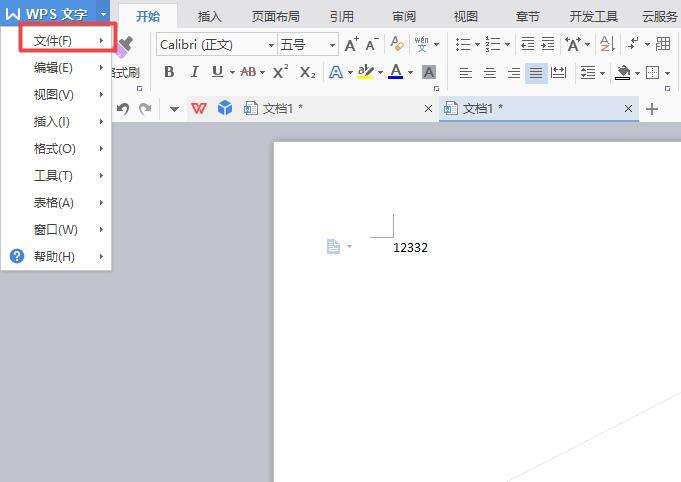 2、之后我们点击左上角的wps文字边上的下拉箭头;