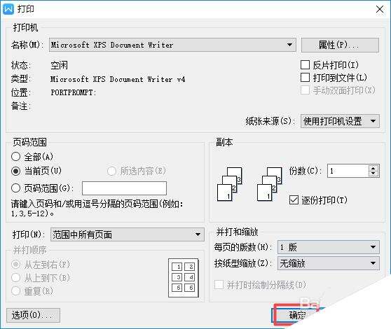 8、最后我们就可以点击确定了,这样打印出来的就是当前页面了,相信大家现在都会打印当前页面了。