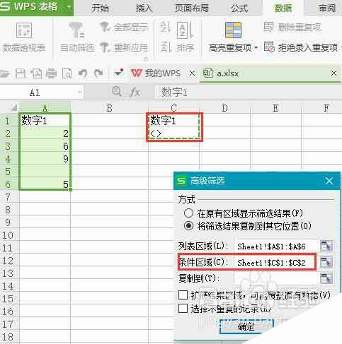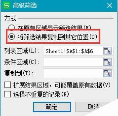 3、在弹出的“高级筛选”对话框中,选择“将筛选结果复制到其他位置”,如下图