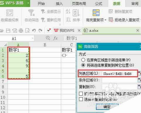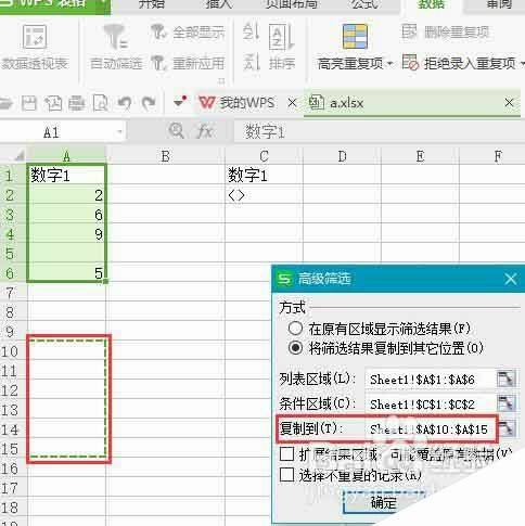 6、选中要复制到的区域,点击“确定”,数据筛选成功