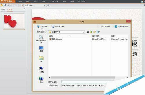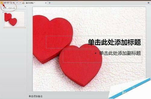 7、想要打开现有的幻灯片,则可以点击图片左上方的打开键,然后即可选择自己电脑上已有的幻灯片文件。