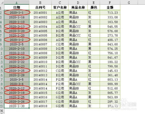6、现在即可看到日期中的无效数据已经用红色的圈圈出来了。