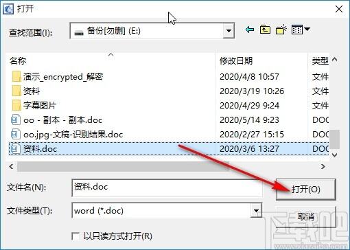 4.点击这个浏览按钮之后,接下来在出现的界面中我们找到想要修复的word文档,选中之后点击右下角的打开按钮。