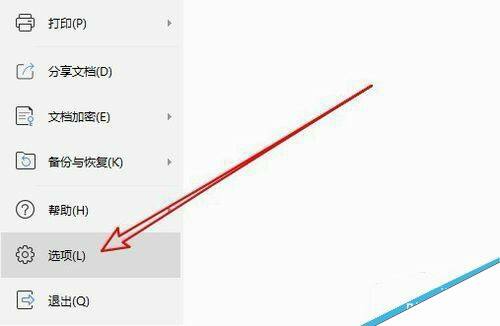 在弹出的wps2019的文件下拉菜单中,我们点击“选项”的菜单项。