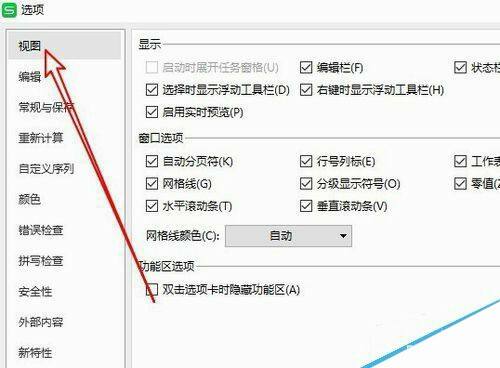 这时就会弹出wps2019的选项窗口,在窗口中点击“视图”的菜单项。