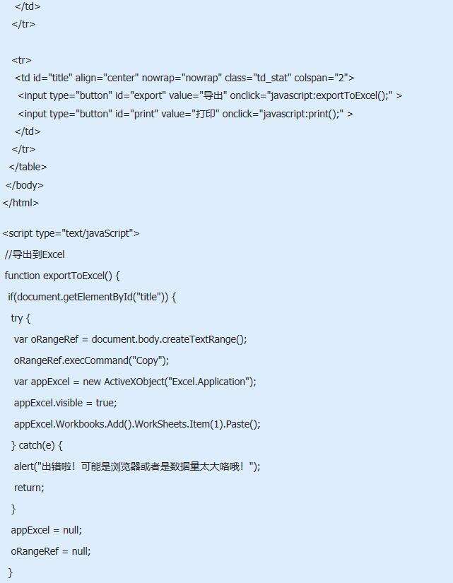 以上是为您收集整理的【ie浏览器怎么使用js导出网页到excel并打印?解决方法分享】办公软件教程的全部内容,希望文章能够帮你了解办公软件教程ie浏览器怎么使用js导出网页到excel并打印?解决方法分享。