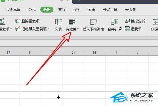 4、接下来,单击弹出下拉菜单中的菜单项“有效性”。
